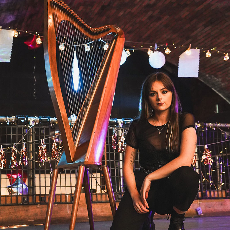 Dara Dubh is an Irish indie-folk artist and harpist. Her music blends folk and alternative influences, pairing harp with direct, emotional songwriting. She has performed across the UK and Europe and continues to develop her sound ahead of her debut album.